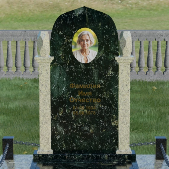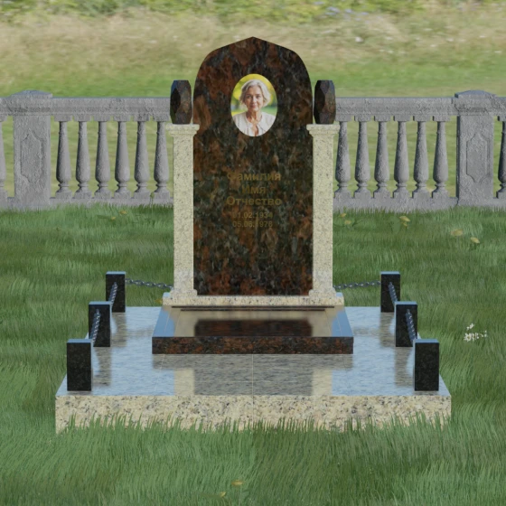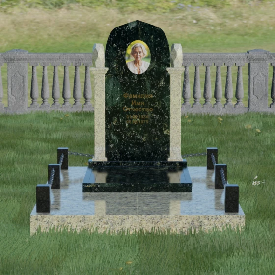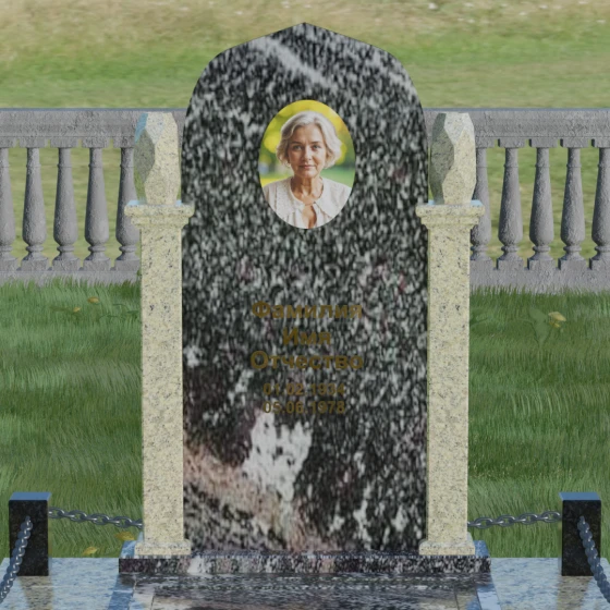 Форма купола или арки в мемориальной архитектуре традиционно символизирует небесный свод и переход души в лучший мир. Это образ защиты и вечного крова, который мы дарим близкому человеку в его последнем пристанище. Колонны, обрамляющие памятник, олицетворяют духовную опору и стойкость характера, а также преемственность поколений. Каждая деталь здесь — от четких линий основания до изящных верхушек — говорит о нерушимой связи между прошлым и настоящим, о покое, который наконец обрела душа, и о той защите, которую память живых обеспечивает ушедшим.