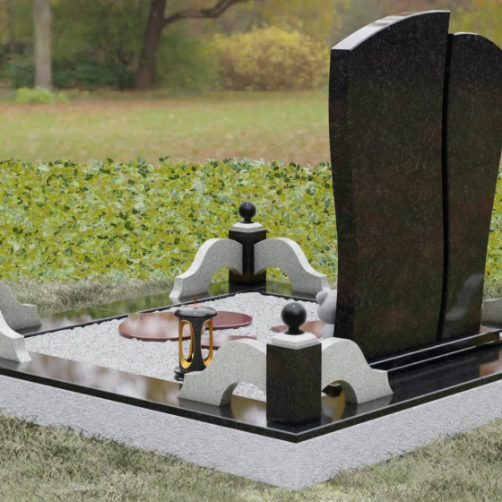 Оформление: Уникальная геометрия этого надгробия сама подсказывает идеальное расположение гравировки. Крупное центральное сердце словно создано для размещения портрета — здесь он будет главным смысловым акцентом, защищенным символом любви. Правую, более широкую часть плиты, рекомендуется использовать для нанесения Фамилии, Имени, Отчества и дат жизни. Здесь же останется достаточно места для проникновенной эпитафии или дополнительного декоративного элемента, например, небольшой виньетки или креста.