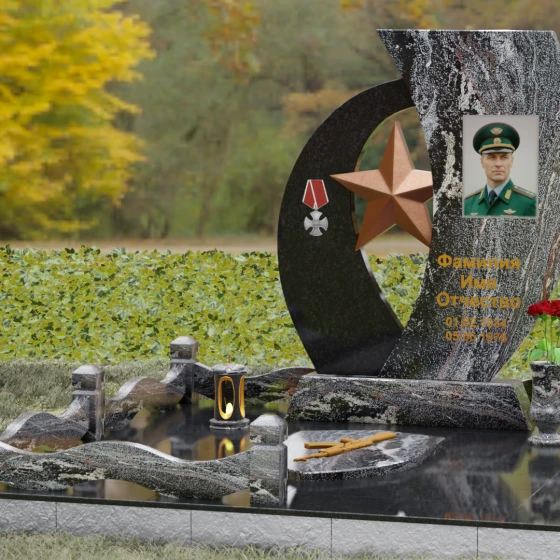 Кому подойдет: Данный мемориальный комплекс спроектирован для увековечивания памяти мужчин, чья жизнь была связана с воинским долгом, государственной службой или героическими поступками. Он станет достойным символом последнего пристанища для ветерана, кадрового офицера или человека с твердым характером. Армейская символика в сочетании с изысканным европейским стилем благоустройства (каменная ваза для живых цветов, лаконичная лампада на постаменте) подчеркивает уважение семьи к заслугам и личным качествам дорогого человека.