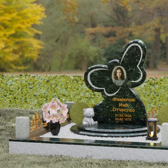 Кому подойдет: Данная модель является универсальным символом нежной привязанности и вечной души. Форма бабочки чаще всего выбирается для оформления захоронений молодых женщин, дочерей или сестер, подчеркивая их хрупкость, красоту и светлый след, оставленный в сердцах близких. В светлых тонах камня (например, в мраморе) изделие идеально подойдет для детского захоронения, символизируя чистоту ангельской души, а в темных гранитах станет величественным знаком памяти о яркой и неординарной творческой личности.