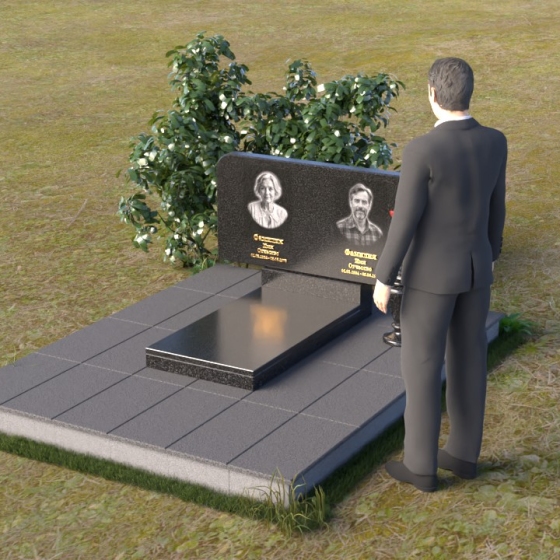 Оформление: Для данной формы стелы идеально подойдет гравировка портретов в овальной или прямоугольной форме. Расположение портретов может быть как симметричным, так и асимметричным, в зависимости от ваших предпочтений. Имена и даты жизни рекомендуется располагать под портретами, используя элегантный шрифт с засечками. Также можно добавить эпитафию, отражающую личность усопшего и вашу любовь к нему.