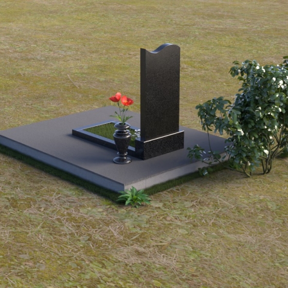 Величественная стела ПВ 029 воплощает в себе гармонию простоты и изысканности. Ее силуэт, словно застывшая мелодия, устремлен ввысь, к небесам. Верхняя часть памятника имеет мягкий, волнообразный изгиб, напоминающий о плавности жизненного пути. Грани стелы тщательно обработаны, создавая игру света и тени, подчеркивая глубину и фактуру камня. Полированная поверхность черного гранита отражает окружающий мир, словно зеркало, напоминая о бренности бытия и вечности памяти. Нижняя часть стелы, переходящая в горизонтальную плиту, образует единое целое, символизируя прочную основу и нерушимость воспоминаний.