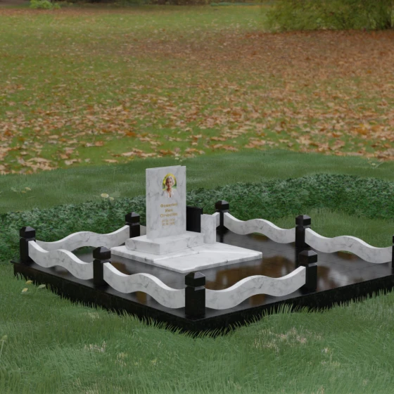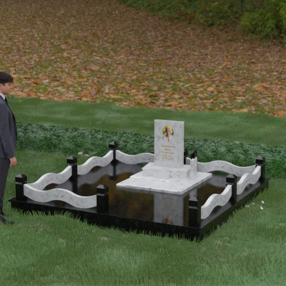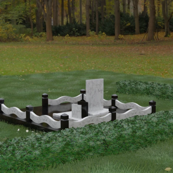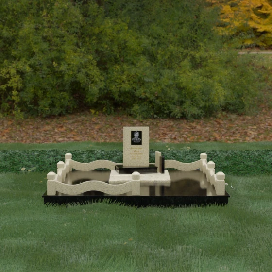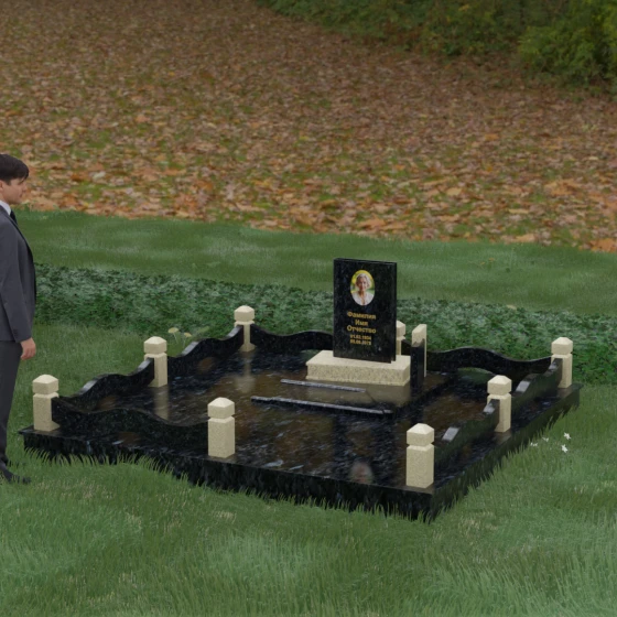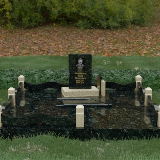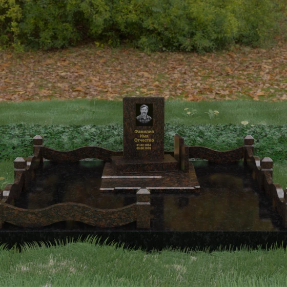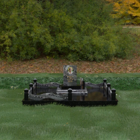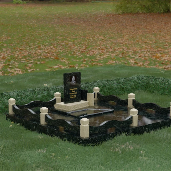 Кому подойдет: Данная модель является универсальным решением для тех, кто ищет комплексный подход к оформлению захоронения. Строгие линии центрального блока позволяют установить его как мужчине, так и женщине, подчеркивая статус и уважение к личности. Благодаря наличию полноразмерного фундамента и ограждения, этот вариант идеален для семей, которые хотят один раз и навсегда благоустроить участок, обеспечив ему достойный вид без необходимости регулярного сложного обслуживания. Это выбор в пользу вечности, массивности и архитектурного совершенства.