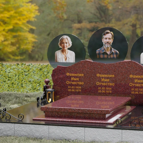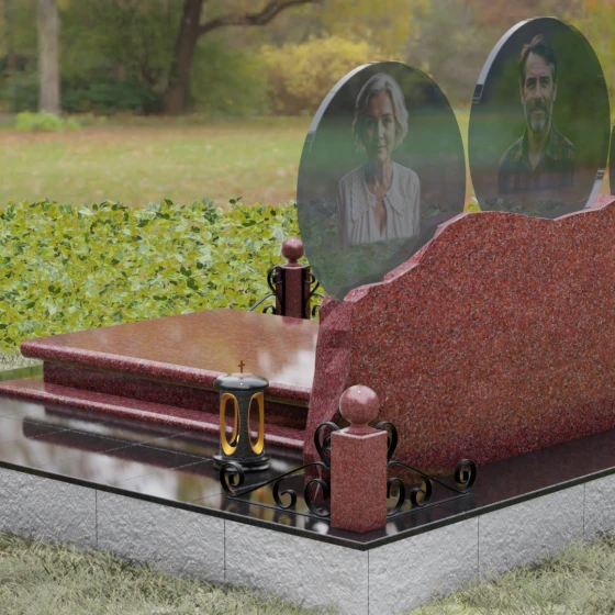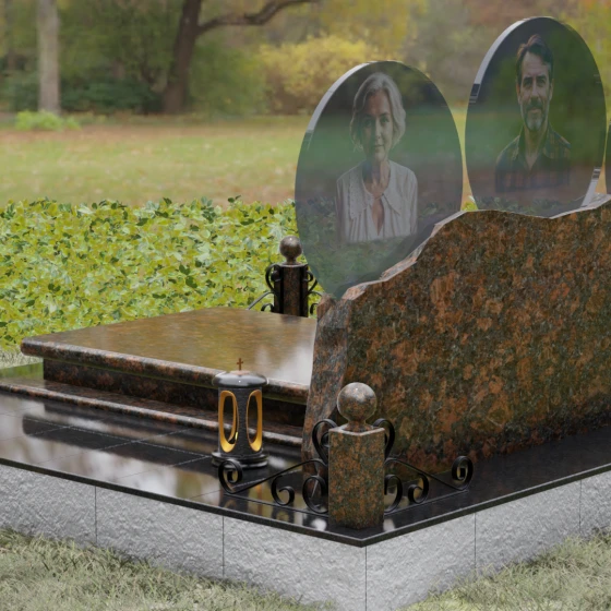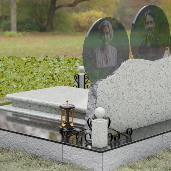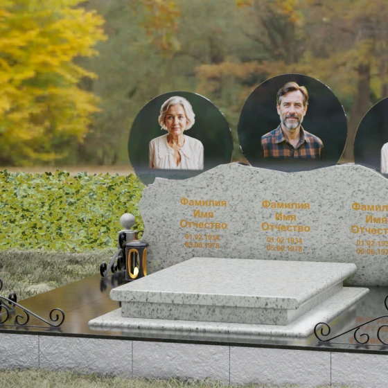 Расположение портретов в идеальных кругах позволяет гармонично сбалансировать композицию, делая акцент на лицах, в то время как обширное пространство нижней части изделия оставляет место для эпитафий, выражающих вашу безмерную любовь и скорбь. Благоустройство участка дополняется сплошной надгробной плитой, которая закрывает открытый грунт, придавая всему мемориальному комплексу завершенный, аккуратный и величественный вид, избавляя вас от необходимости постоянной борьбы с сорняками.