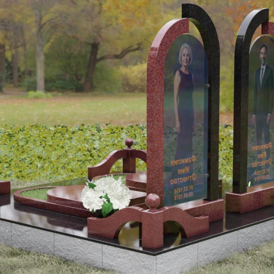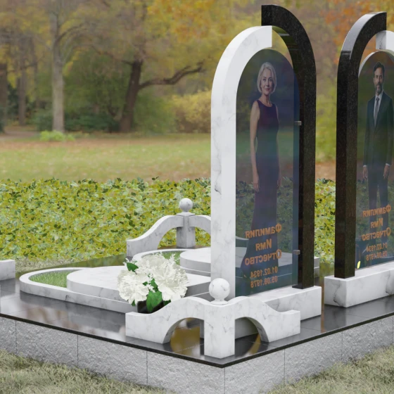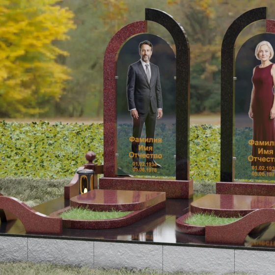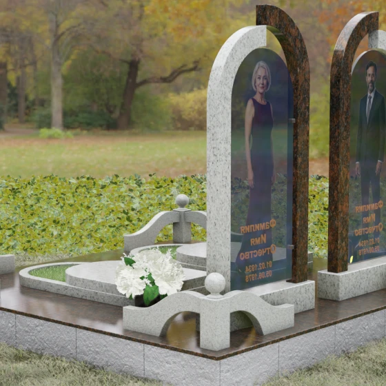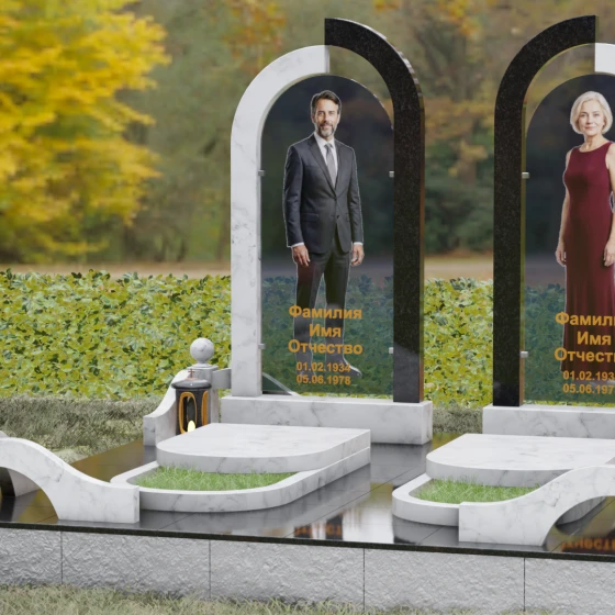 Кому подойдет: Данный мемориальный комплекс — идеальный выбор для оформления семейного захоронения (мужа и жены, родителей). Его выбирают те, кто ценит современный европейский стиль, сочетающий в себе традиционную прочность камня и инновационные технологии художественного оформления. Это выбор для людей, стремящихся уйти от тяжеловесных форм в сторону света, пространства и эстетического совершенства, сохраняя при этом фундаментальность и надежность конструкции.