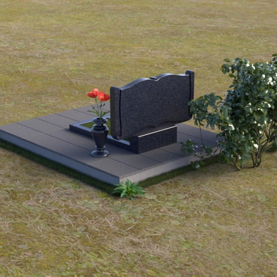Ритуальное изделие ПГ036 представляет собой сдержанную, но исполненную достоинства композицию, созданную для сохранения памяти о близких. Два прямоугольных элемента стелы, соединенные вместе, образуют волнистый верх, напоминающий раскрытую книгу судеб. Грани обеих частей искусно обработаны, создавая мягкий, обтекаемый силуэт. Зеркальная полировка черного гранита служит идеальным фоном для гравировки портретов и надписей, словно запечатлевая светлые воспоминания в вечном камне. Слева и справа, в верхней части стелы, вырезаны лаконичные кресты, символизирующие веру и надежду. Тонкие линии врезаются в полированную поверхность, создавая игру света и тени, и добавляя глубину изображению. Горизонтальная плита, расположенная перед стелой, выполнена из того же черного гранита с зеркальной полировкой, отражая небо и окружающий пейзаж, создавая ощущение легкости и воздушности. Вместе с тем, основание памятника выполнено из серого камня, что придает всей композиции устойчивость и основательность.