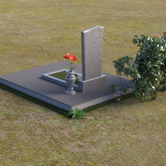 Геометрия модели продумана до мелочей. От основания, представляющего собой широкую плиту серого цвета с шероховатой фактурой, взгляд плавно переходит к горизонтальной накладке из полированного черного гранита, словно застывшему зеркалу. Затем – к вертикальной плите, устремленной ввысь. Скошенная верхняя грань плиты придает ей динамику и визуальную легкость, избегая ощущения тяжеловесности. Четкие линии и прямые углы подчеркивают строгость и сдержанность композиции, в то же время полированная поверхность дарит ощущение тепла и уюта.